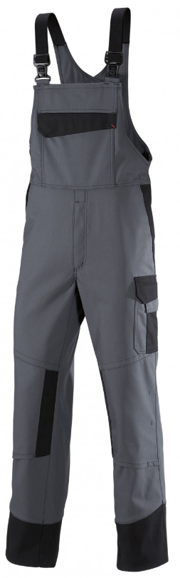 Elastische schouderbanden met kunststof gespen, grote dubbele borstzak met klep, waarvan 1 met blinde ritssluiting, 2 zijzakken, beenzak met opgezet GSM-vak, beide met klep, verlengd rugpand, 1 duimstokvak met klep, 2 achterzakken met klep, voorkant broek twee lagen, kniezakken voor kniebeschermers 1839 000 53 (apart bestellen).