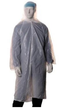De Polyethyleen bezoekersjas is voorzien van een vaste capuchon en 5-knoops druksluiting. De witte jas is waterdicht en goed voor eenmalig gebruik. De bezoekersjas is 18 mu dik en wordt verpakt per 12 stuks.