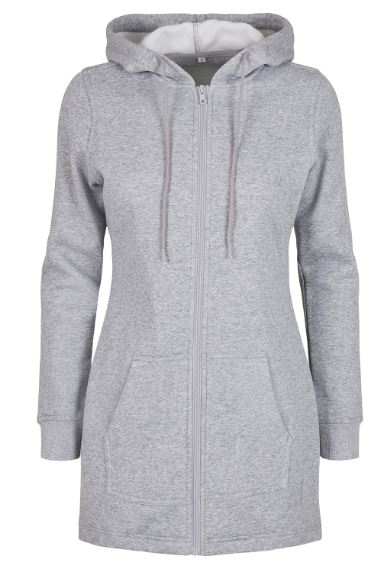 The women's sweat parka gives a casual touch to any outfit. The jacket is made from a soft-cotton blend and can be adjusted using an internal drawstring. You’ll be sure to pick it on days when you just want to be comfortable. A hood and spacious kangaroo pocket top off the It piece. The crescent-shaped cut-out on the back can be customized with a print. Comfortable basic zip-hoody for women in the style of a parka with extended back and hood. Great fit thanks to the drawstring hem and ribbed cuffs. The half-moon at the back neckline can easily be refined individually.