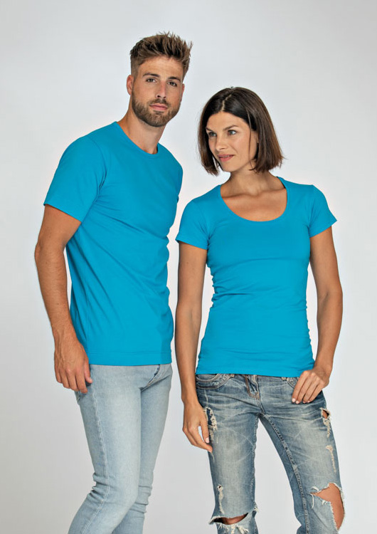 95% gekamde katoen – 5% elastaan – single jersey Samenstelling Grey Heather: 85% katoen - 10% viscose - 5% elastaan