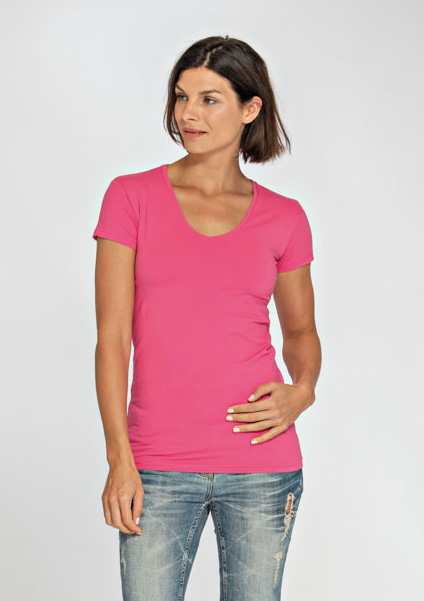 Lemon & Soda dames V-hals T-shirt met korte mouwen in meerdere kleuren. Een comfortabel T-shirt dankzij de langere lengte en het aansluitende model van de single jersey. De 12 beschikbare kleuren zijn ideaal om te bedrukken en te borduren en perfect in te zetten als werkkleding.