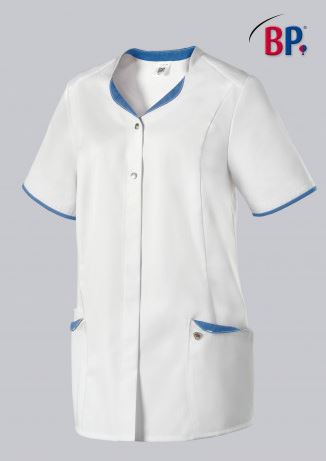 1/2 mouw, V-hals, opstaande kraag, blinde drukknopenlijst met 2 zichtbare dukknopen, 2 ruime zijzakken waarvan 1 met smartphonezak en 1 met sleutellus.