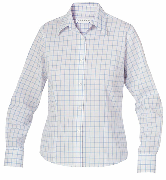 Damesblouse Caraway 100% katoen lange mouw (1xblauw/wit