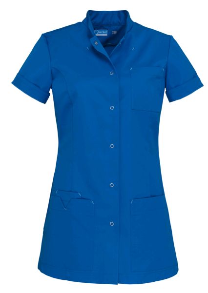 Getailleerd damesjack met opstaande boord, diverse zakken o.a. met telefoonzak, mouwomslag en zijsplitjes. Uitgevoerd in kleur met trensjes en mouwstiksels in lichtere tint