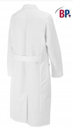 Lange mouw, reverskraag, blinde drukknopenlijst, 1 borstzak, 2 zijzakken, split in het rugpand, riem in het rugpand.