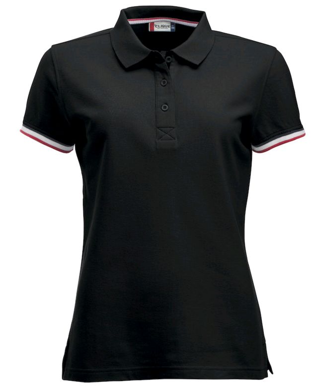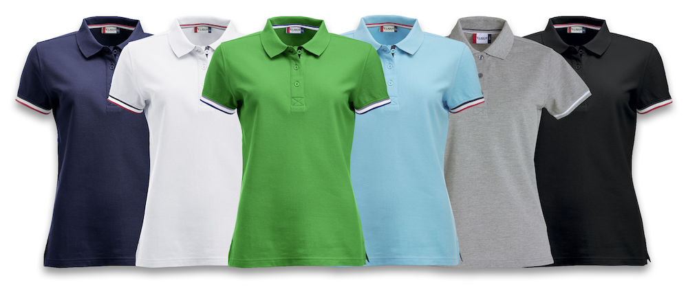 Comfortabel en trendy dames polo in 100% katoen. 3 Contrast kleuren aan de onderzijde van de kraag en mouw. Afgewerkt met splitjes aan de onderkant en voorzien van nektape.