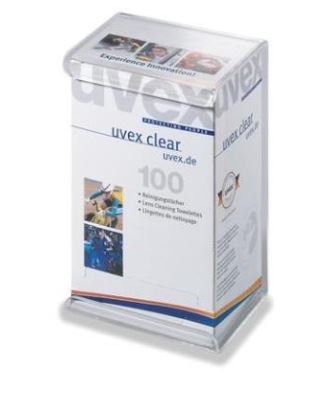 Uvex 9963-000 is een dispenser met reinigingsdoekjes en ideaal om onderweg mee te nemen voor het reinigen van alle
