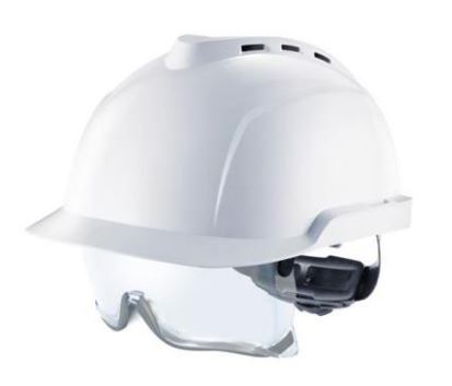 De V-Gard 930 is vervaardigd van met rubber verstevigd ABS voor meer sterkte en bescherming tegen laterale vervorming. Met ingebouwde overzetbril. Moderne, dynamische en sportief gestileerde schaal. Gootje rond de rand van helm voert regen en vuil weg van de gebruiker af. Ventilatiegaten op het bovendeel voor optimale luchtstroom. Antistatische assemblage, gecertificeerd volgens electrostatic-INERIS voor gebruik in ATEX/explosieve omgevingen. Met zes-punts Fas-Trac III ratchetophanging met premium wasbare en vervangbare zweetband. Banden over het hoofd van geweven polyester bieden een hoge mate aan comfort en langdurige, consistente schokdemping. Geïntegreerde overzetbril met heldere polycarbonaat vizier past over corrigerende lens doordat de ophanging kan schuiven. Overzetbril heeft uitstekende anticondens en kraswerende eigenschappen (lensmarkering: 2C-1,2 1 B K N). Gripgedeelte met railsysteem voor snel en gemakkelijk opbergen van het vizier, zelfs met handschoenen aan. Gewicht: 504 gram. Verstelbaar binnenwerk: 52 t/m 63 cm. Kleur: wit.