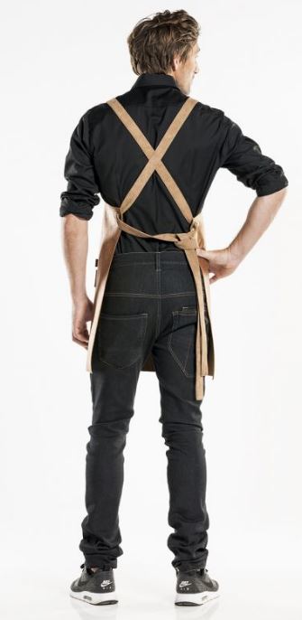 Authentiek, lichtgewicht en tijdloos. Van bistro, foodtruck tot trendy bar, de nieuwe Leather70 collectie voelt zich overal thuis. De innovatieve combinatie rundleer en polyester maakt de leren schorten en sloven licht en minder kwetsbaar voor vlekken. Alle banden zijn op maat te verstellen. De 'raw edge - single stitch' afwerking geeft de collectie de herkenbare, stoere uitstraling. De Leather70 collectie bestaat uit 4 kleuren: Irish Cream, Bourbon Gold, Barrel Brown en Moonshine black. Reinigingsadvies: Dit natuurlijke product kan worden afgenomen met een vochtige doek. Eventueel kan een neutrale zeep als groene zeep worden gebruikt voor het afnemen van het materiaal. De banden kunnen apart worden gereinigd op 30 graden. Dit stoere, korte schort kenmerkt zich door op de rug kruislingse banden. Een fraaie en praktische vondst, want de cross-look sluiting maakt de nekbelasting minimaal. Aan de voorkant is een dubbele pocket verwerkt. Wassen met soortgelijke kleuren. Artikelen voorzien van drukknopen, ritssluitingen, zeilringen of gespen kunnen niet worden geperst in de wasserij. Sluit klittenband altijd vóórdat het item gewassen wordt. Vóór eerste gebruik wassen op 30 graden. Zie wasvoorschriften aan binnenzijde van het kledingstuk.