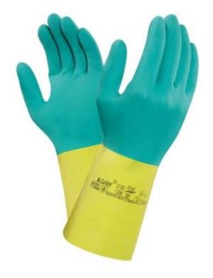 Combinatie van latex en neopreen voor een betrouwbare bescherming tegen een hele reeks chemicaliën. Dubbele dompeling bij de productie biedt dubbele bescherming. Zware uitvoering voor meer weerstand tegen zouten en detergenten. Ongevoerde zware handschoen met ruitreliëf. Sterk en duurzaam, met een uitstekende greep op droge en natte voorwerpen. Hoogwaardig gevlokt zuiver katoen, helpt het risico op huidirritatie verminderen. Coating van natuurrubberlatex/neopreen. Dikte: 0,68 mm. Lengte: 323 mm. AQL 0,65 (EN 374). Kleur: groen/geel.