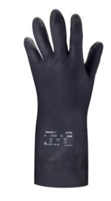 Middelzware chemische bescherming gecombineerd met uitstekende soepelheid en gebruiksgemak. Ideaal voor gebruik in een koude omgeving, neopreen behoudt ook bij lage temperatuur zijn voortreffelijke elasticiteit. Neopreensamenstelling. Beschermt tegen een hele reeks van zuren, bijtende stoffen, alcoholen en een groot aantal solvents. Superieure soepelheid, bevat natuurrubber. Gevlokte voering in zuiver katoen. Zacht, comfortabel en absorberend. AQL 0,65 (EN 374). Dikte: 0,75 mm. Lengte: 300 mm. Kleur: zwart.