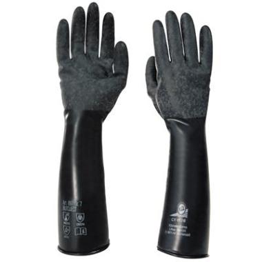 Butyl-coating. Rolrand. Geruwd. Gepoederd. Voldoet aan de eisen van de te ontwerpen norm EN 16350 voor veiligheidshandschoenen tegen electrostatische risico's, type A. Goede houdbaarheid. Goede grip door geruwd oppervlak. Biedt bescherming bij bijzonder fijngevoelige werkzaamheden. Zeer goede bescherming voor bijzonder gevaarlijke chemicaliën. Goed draagcomfort. Zeer goede temperatuurflexibiliteit. Goede mechanische eigenschappen. Goede gasdichtheid. AQL 0,65 (EN 374). Dikte: 0,47 mm. Lengte: 360 mm. Kleur: zwart.