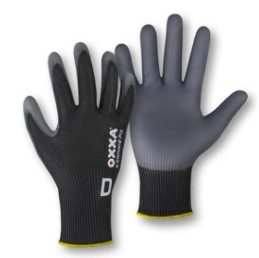 OXXA X-Diamond-Pro 51-785 werkhandschoenen met PU-coating zijn gemaakt met Dyneema® Diamond Technology vezels en zijn uiterst comfortabel. De snijklasse D handschoenen biedt de mogelijkheid om een toetsenbord of touchscreen te bedienen. Handschoen met PU-coating. Nylon/Lycra/Dyneema® Diamond drager (13 gauge). De ultra dunne en lichte PU-coating biedt een hoge mate van comfort, vingergevoeligheid en flexibiliteit en verhoogt de productiviteit van de gebruiker. De 13 gauge gebreide drager geeft de handschoen een uitstekende soepelheid en is voorzien van Dyneema® Diamond technology-vezels die zorgen voor een zeer hoge snijbestendigheid en een uitstekend comfort. Het extra lange manchet (+3 cm) zorgt voor een maximale bescherming van de hand en de pols. De handschoen is Sanitized® behandeld om bacteriegroei te remmen en nare geurtjes te voorkomen. Dit zorgt voor een langere levensduur van de handschoenen. Ideale handschoen voor het hanteren van kleine voorwerpen en het bedienen van een toetsenbord of touchscreen telefoon of tablet. Kleur: grijs/zwart.