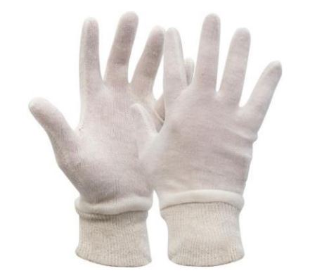 Interlock handschoen gemaakt van 50% katoen/50% polyester. Gebreid manchet. Links en rechts draagbare herenmaat (280 grams). Goede vingergevoeligheid. Ook te gebruiken als onderhandschoen. Verpakt per dozijn (12 paar). Kleur: écru.