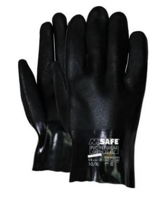 Deze groen geruwde PVC handschoenen zijn 270 mm lang en hebben een goede pasvorm. De PVC handschoenen zijn bovendien voorzien van antislip en daarom uitstekend bestand tegen olie en vet.