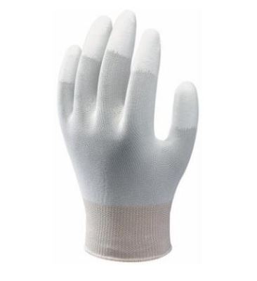 Slipvast nylonbreiwerk met polyurethaan-coating. Vingertoppen met coating. Tricot manchet. Zonder speciale behandeling. Naadloos breiwerk. Een lichte, elastische, pluisarme handschoen, bestand tegen vervorming en behoudt langer zijn vorm. Beschermt de vingertoppen tegen olie en kleine snijwonden, blijft soepel. Er blijven geen vingerafdrukken achter op gebruikte voorwerpen, vingertoppen beschermd. Geweldige bewegingsvrijheid voor de pols. Kleur: wit.