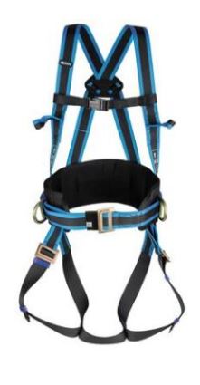 Harnas met twee bevestigingspunten en een werk positioneringsgordel. Twee gehechte textiele lussen op de borst die verbonden moeten worden met een karabijnhaak (apart te bestellen) om een verbindingspunt te creëren, een dorsale bevestiging (D-ring) voor valbeveiliging op de rug en twee D-ringen voor werkpositionering aan beide zijden op de zij. Verstelbare beenbanden en taillegordel en glijdende gespen voor eenvoudige aanpassing van de borststrap. Schouder en beenbanden onderscheiden zich door een dubbele kleurstelling. Gereedschapskoorden kunnen worden bevestigd aan de lussen en ringen aan de achterzijde. Riemen zijn gemaakt van polyester en gespen zijn gemaakt van staal. Te gebruiken door personen met gewicht tot 100 kg (inclusief uitrusting) en met lengte tussen 160 en 200 cm. Universele maat.