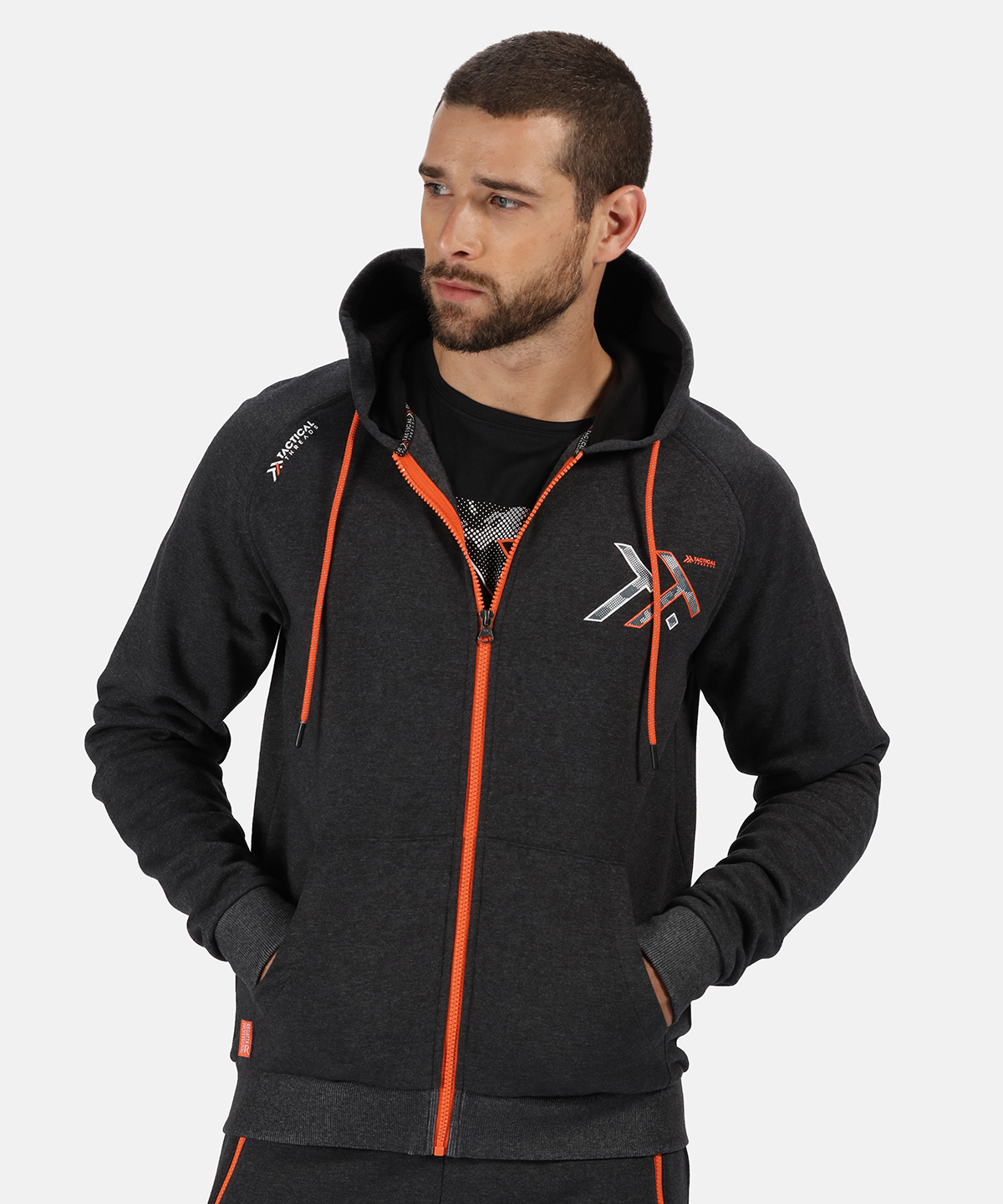 Stay warm and on-trend at work in the Manoeuvre. The hoodie is packed with style and the full-zip creates an easy-wear piece. Stay warm and on-trend at work in the Manoeuvre. The hoodie is packed with style and the full-zip creates an easy-wear piece. The ribbed hem and cuffs keep it long lasting. The stylish piece is finished with attractive branding and bright orange detailing.