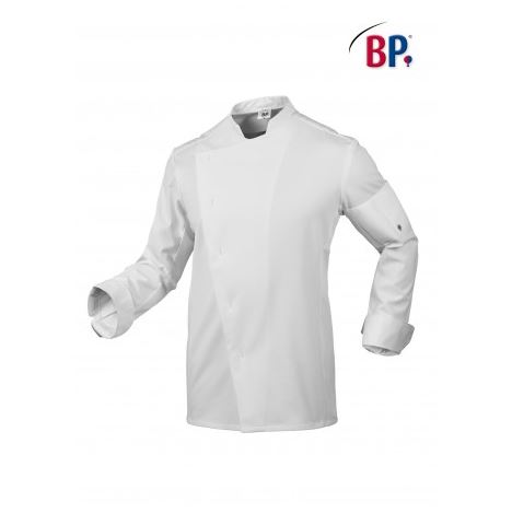 Lange mouw, maximale bewegingsvrijheid door stretchstof en ingezette okselstukken, opstaande kraag, blinde drukknopenlijst, ergonomisch gevormde mouwen, 1 met opgezet 2 pennenzakken, vormgevende deelnaden