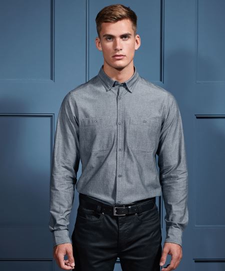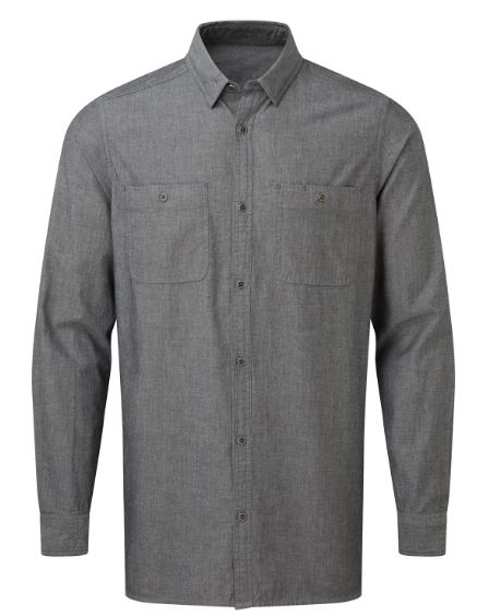 A chambray finish complements this Fairtrade organic cotton men’s shirt. Twin-needle stitching features across the style from the cuffs and sleeves, through to the collar, placket and chest pockets. Two button-down chest pockets add to the overall aesthetic of the shirt, together with a button down collar to the underside. A single button features on the back of the collar to secure an apron neatly in place. Two chest pockets with combined pen pocket to the left. Double button cuff for adjustment with a single button sleeve guard. Button-down collar on the underside. Care label printed on the inside collar that highlights the eco-friendly properties of this style.