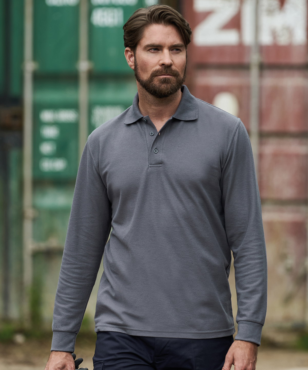 For the cooler months, the Pro long sleeve polo is an essential, with the same fabric and fit as the best selling RX101 Pro polo, this long sleeve style completes your workwear offering. With a 3-button placket, and long sleeves with a cuffed hem. Self-coloured taped neck. Long sleeve with cuff. Twin-needle stitching for durability. Ribbed self-coloured collar . 3 self-coloured button placket with spare button.