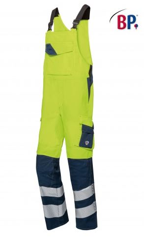 Elastische schouderbanden met kunststof klikgespen, grote dubbele borstzak met ritssluiting en klep, hoog ruggedeelte, ergonomische snit, 2 zijzakken, 1 met klep afsluitbare achterzak, 1 ruime beenzak met opgezette smartphonezak met pennenzakken, loshangende duimstokzak, 2 doorlopende reflecterende strepen (7 cm) aan de onderkant van de broekspijpen, ergonomisch gevormde broekspijpen, voorkant broek twee lagen, kniezakken voor kniekussens 1839 (moeten apart besteld worden).