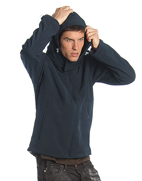 Buitenzijde: 94% Polyester, 6% Elasthan™. Middelste laag: ademende microporeuze membraan. Binnenkant: pluisvrije Micro-Fleece en/of polyester gaasvoering, afneembare en verstelbare capuchon, doorlopende ritssluiting met windvanger en kinbeschermer, ingezette mouwen, manchetten met klittenbandsluiting, zijzakken met ritssluiting, verlengd rugpand en elastisch rijgkoord in onderboord met stoppers, toegang voor borduring/bedrukking bij de linkerborst met ritsopening aan de binnenzijde.