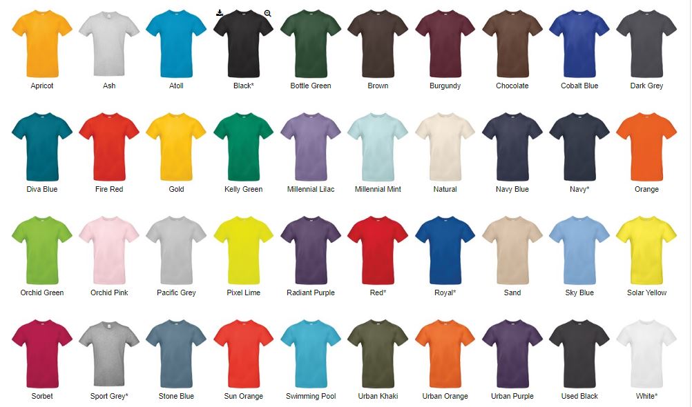 Wit, Zwart, Navy, Grijsmelange, Royal Blue en Rood ook in 4XL en 5XL verkrijgbaar