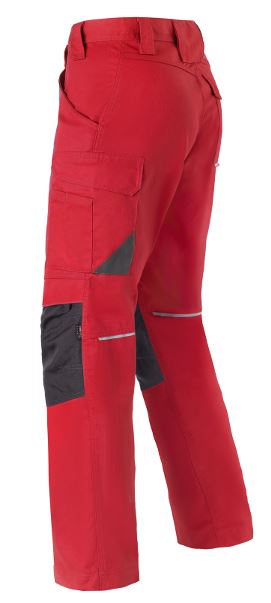 Verdekte ritssluiting, dijbeenzak met verdekte drukknoopsluiting, 2 ingezette zijzakken, duimstokzak met rolmaatzakje, verstelbare elastiek in taille, Cordura® kniezakken, 1 achterzak met verdekte drukknoopsluiting, reflecterende piping, D-ring, extra inzet bij kruis ter voorkoming van uitscheuring.