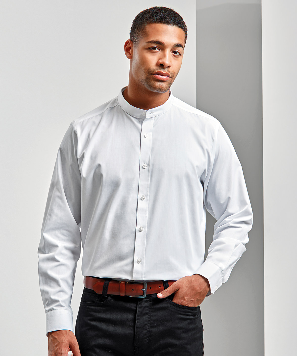 is een welkome aanvulling op de Hospitalitywear collectie en een populaire stijl voor bedienend personeel. De opvallende hals heeft een smalle stoffen band rond de hals die aan de voorkant met een knoop gesloten wordt. Dubbele manchetknopen en mouwophouder voor een casual uitstraling. De stijl is unisex zodat dit trendy, maar tijdloze kledingstuk door het hele team gedragen kan worden.