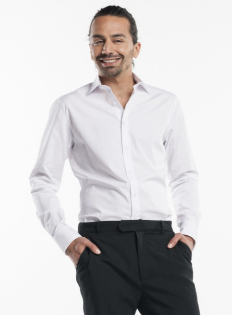 Dit overhemd voor de man is getailleerd en heeft een stijlvolle pasvorm. Het stretch-materiaal, dat tevens industrieel wasbaar is, maakt het overhemd extreem comfortabel en perfect geschikt voor bedienend personeel. Wassen met soortgelijke kleuren. Artikelen voorzien van drukknopen, ritssluitingen, zeilringen of gespen kunnen niet worden geperst in de wasserij. Sluit klittenband altijd vóórdat het item gewassen wordt. Vóór eerste gebruik wassen op 30 graden. Zie wasvoorschriften aan binnenzijde van het kledingstuk.