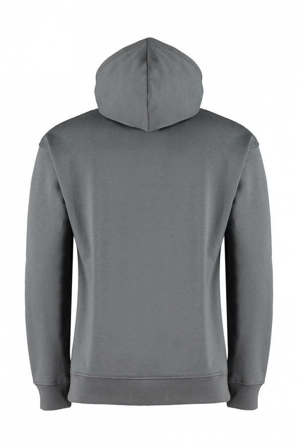Gelijkgekleurde jersey gevoerde capuchon met platte kanten trekkoord