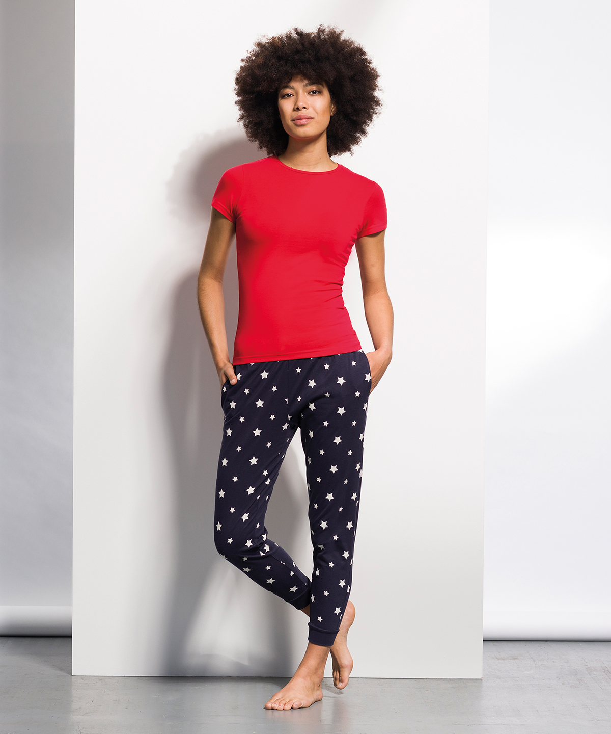 Bringing fun and chilled vibes with SF's trendy loungewear. Tear-out label for easy rebranding. Stretch lounge pants with elasticated waistband and drawcord. Self-fabric cuffed hem with side seam pockets. Tear-out label.