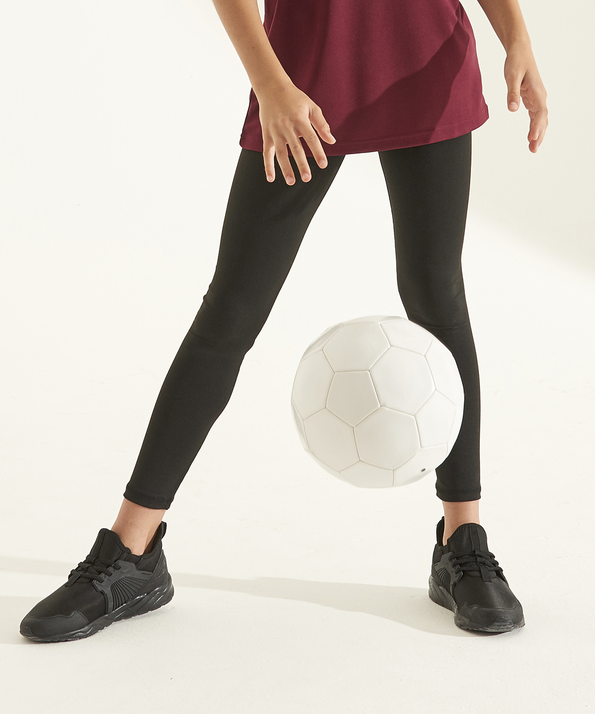 Lange legging voor kinderen. Diepe maatband en stretchmateriaal voor comfort en bewegingsvrijheid. Sneldrogend en vochtafvoerend.