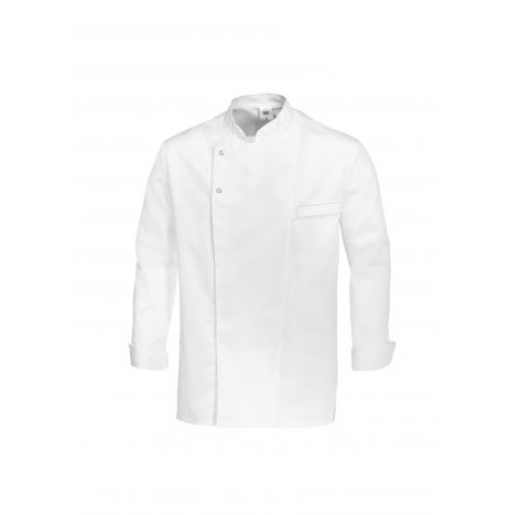 Lange mouw met manchetten, opstaande kraag, blinde drukknopenlijst, met 2 zichtbare knopen, ventilatieopeningen, 1 paspelzak op borsthoogte