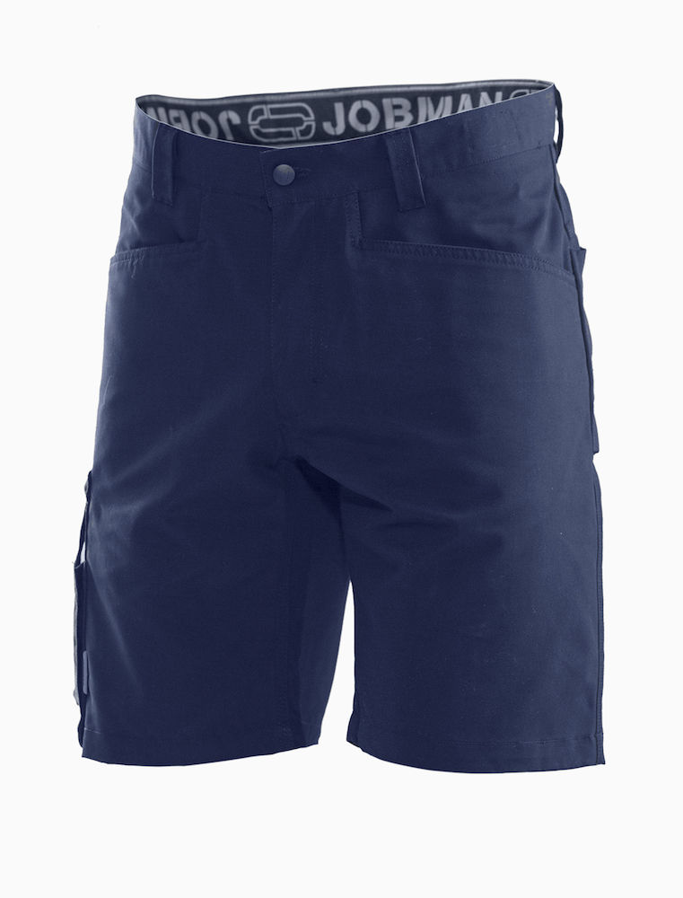 Functionele korte servicebroek met ruime steekzakken aan de voorzijde, verstevigde achterzakken en zak op het been met flap over de rits, ruimte voor een ID-kaart en extra compartiment. De korte broek is leverbaar in 3 commerciële kleuren die mooi aansluiten op de kleding in de JOBMAN collectie.