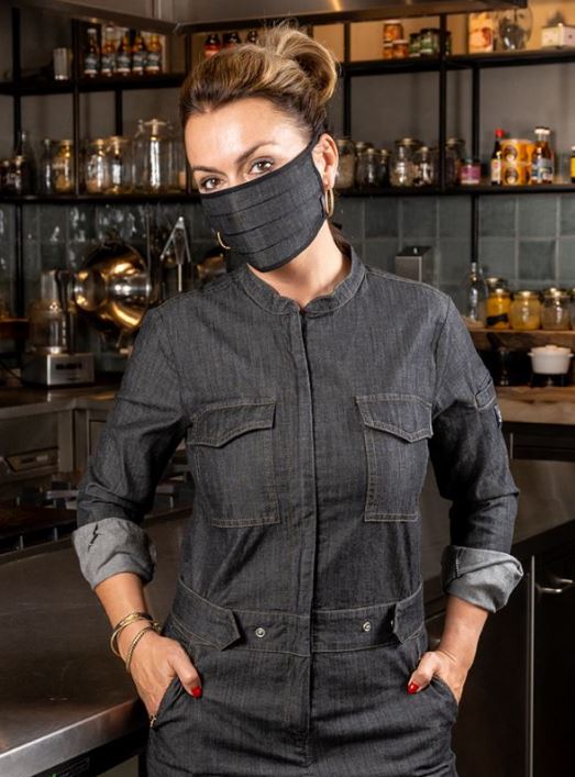Wasbare mondkapjes voor de horeca. Prettig draagbaar door enkel laags stof. Bevestiging achter op het hoofd door middel van linten. In verschillende designs verkrijgbaar passend bij je favoriete outfit. Disclaimer: Non-medical / Not-certified face mask. Deze mondkapjes voldoen niet aan medische richtlijnen en vormen geen garantie voor het reduceren van besmettingsrisico. Chaud Devant aanvaardt geen enkele verantwoordelijkheid, resp. aansprakelijkheid voor geleden schade ten gevolge van het gebruik van deze mondkapjes. Wassen met soortgelijke kleuren. Artikelen voorzien van drukknopen, ritssluitingen, zeilringen of gespen kunnen niet worden geperst in de wasserij. Sluit klittenband altijd vóórdat het item gewassen wordt. Vóór eerste gebruik wassen op 30 graden. Zie wasvoorschriften aan binnenzijde van het kledingstuk.
