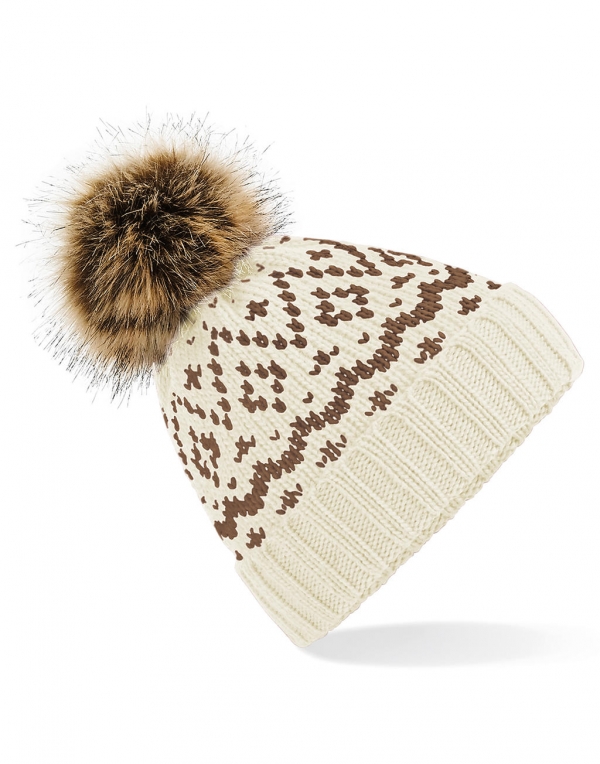Muts Beechfield Fair Isle Faux Fur Pop Pom Beanie