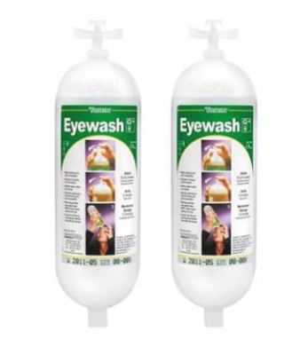 Twee x 1 liter vervangingsflessen met oogwater voor oogspoelstation 127 en 129. Vervangingspakket met twee flessen oogwater van 1.000 ml en stofkappen. Afmeting: 340 mm (H) x 200 mm (B) x 100 mm (D).