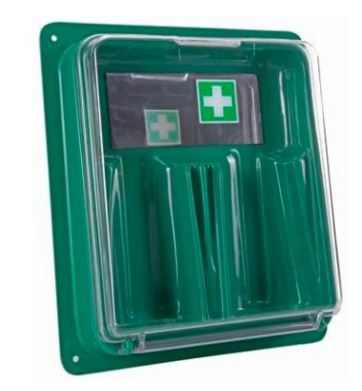 Geschikt voor twee Barikos oogspoelfles. Transparante deksel. Eerste hulp symbool.