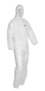 Kwaliteit: SMS polypropyleen (3-laags non-woven stof) 2-weg ritssluiting aan de voorzijde onder overslag. Beschermende disposable overall tegen vaste en vloeibare deeltjes. Mouwen, taille en enkels zijn voorzien van latexvrij elastiek voor een betere pasvorm en meer bewegingsvrijheid. Deze overall met vaste capuchon en gestikte naden is ideaal voor gebruik in bijvoorbeeld laboratoria en in de landbouw en voor algemene reinigingswerkzaamheden en het verwerken van asbest. Product voor éénmalig gebruik. Kleur: wit.