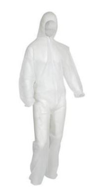 Kwaliteit: polypropyleen (ca 45 grams). Deze disposable overall beschermt u uitsluitend tegen reinigings, verf en spuitwerkzaamheden van niet schadelijke aard. Deze overall kan alleen worden ingezet als beschermingsmiddel voor de onderliggende kleding. Elastiek in de mouwen, pijpen en capuchon. Verdekte 2-weg ritssluiting. Vaste capuchon. Per stuk verpakt. Omdoos à 50 stuks. Kleur: marineblauw.