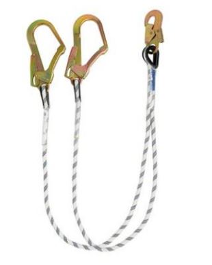 Samengesteld uit 12 mm diameter polyamide kernmantellijn inclusief een stalen musketonhaak (opening 16 mm) en twee stalen steigerhaken (opening 50,8 mm). Slijtvast oog om de lussen te beschermen tegen beschadiging. De aanhechting van het touw is beveiligd met een sterke transparante dekkingskoker die het einde beschermt, wat de steken zichtbaar maakt voor eenvoudige inspectie. Sterkte: 22 kN. Lengte: 1,5 m.