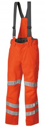 Afritsbaar hoog ruggedeelte met extra brede afknoopbare schouderbanden, gedeeltelijk elastische, met knopen verstelbare tailleband, gelaste naden, 2 zijzakken, beenzak met opgezet smartphonevak, beenzak en smartphonevak met klepsluiting, 1 duimstokzak, 1 achterzak met klepsluiting, broekspijpen met ergonomische pasvorm, 2 doorlopende reflecterende strepen aan de onderkant van de broekspijpen, 1 doorlopende reflecterende streep aan de bovenkant van de broekspijpen, ritssluiting aan de zijkant van de broekspijpen om de broek gemakkelijk aan en uit te trekken, extra klepsluiting voor waterdichte afsluiting.