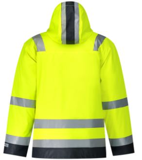 De regenjas Multinorm Bicolor beschermt de professional tegen meerdere restrisico's uit de omgeving. De jas is EN ISO 20471:2013 klasse 2 genormeerd waardoor de drager zichtbaar is bij dag, schemer en nacht. De regenjas is EN 343:2003+A1:2007, klasse 3:1 gecertificeerd, dit wil zeggen dat de jas u beschermt tegen regen en slecht weer. Daarnaast voldoet de jas aan de EN1149-5:2008 norm. De kleding voorkomt het ontstaan van vonken, die explosies kunnen veroorzaken. De regenjas is voorzien van een uitneembare binnenjas die vlamvertragend is en heeft aan de voorzijde 2 zakken. De capuchon is verstelbaar middels een stelkoord. High Visibility, Waterdicht, Winddicht, Reflectiestriping, Regenkleding, Capuchon, Vlamvertragend, Antistatisch, Platbinding, Polyester, Bi-color, Jassen, EN 1149-5:2008, EN 343:2003 Klasse 3:1, EN ISO 14116:2015, EN ISO 20471:2013 Klasse 1, Multinorm, 40 °C, Extreme protectie, Multinorm, Stormflap over rits, Uitritsbare binnenvoering, Verdekte zakken op voorpand, Verstelbare manchet