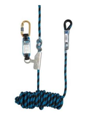 Permanent bevestigd aan de kernmantellijn. Wordt geleverd met een valdemper en een 12 mm diameter polyester kernmantellijn. Stalen karabijnhaak (opening 18 mm) voor aansluiting op een harnas. Slijtvast oog om de lussen te beschermen tegen beschadiging. De aanhechting is beveiligd met een transparante dekkingskoker die het einde beschermt, wat de steken zichtbaar maakt voor inspectie. Voorzien van een NFC-chip onder het label die is bedoeld voor het in kaart brengen van gebruikers en het bijhouden van inspectietermijnen. Lengte: 10 m. Maximale weerstand: 15 kN.
