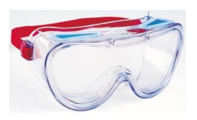 Ruimzichtbril met soepel, doorzichtig en volledig dicht pvc montuur. Combineerbaar met de meeste correctiebrillen. Antidamp-coating. Acetaat buitenlens met een polycarbonaat binnenlens. Model zonder ventilatie. Elastische hoofdband. Heldere lens.