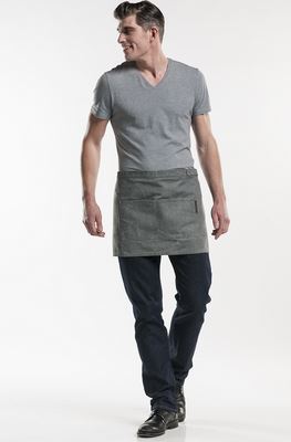 De Pure Denim Collection is sterk, puur, rauw en toont karakter … En is daarom de perfecte samensmelting van fashion en workwear. Echte denim leeft! Hoe vaker je de stof wast, hoe meer deze tot leven komt. Was en behandel zoals jij wilt en creëer zo je eigen identiteit. Durf te combineren en vind het model dat bij jou past! De Pure Denim artikelen zijn niet geschikt voor industriële reiniging. Let op, denim kan afgeven. Vermijdt contact met licht gekleurd meubilair of kleding. Deze modellen zijn beschikbaar in de aardse tinten: groen, grijs, bruin en mud. Everybody loves denim! Dit stoere korte sloofje heeft twee zakjes middenvoor. De extra lus op de band biedt een handige oplossing voor bijvoorbeeld een