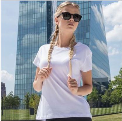 een zeer nonchalante basic: dankzij het enigszins hoekige model valt het Ladies Box T-shirt mooi losjes en nonchalant, maar zit desondanks perfect bij de schouders. De single jersey kan uitstekend worden bedrukt.