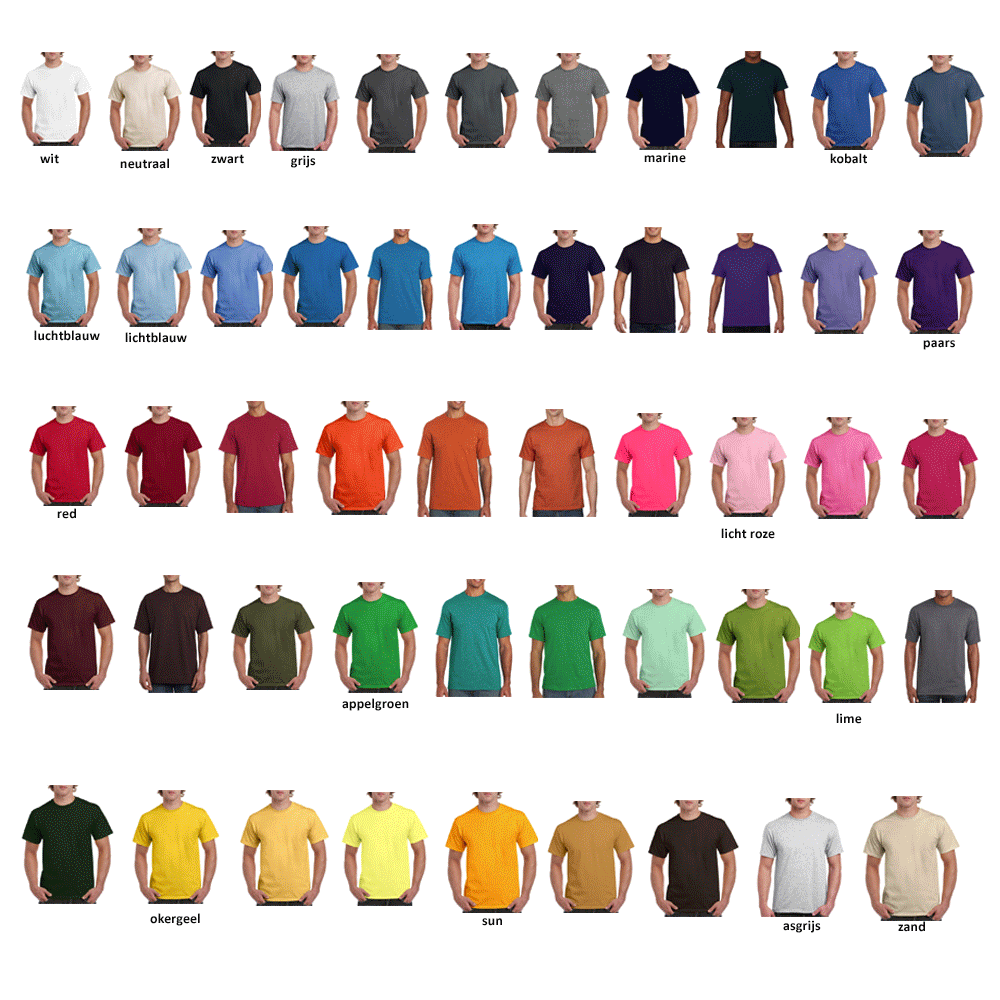 Maattabel voor T-Shirt Gildan Heavy Cotton